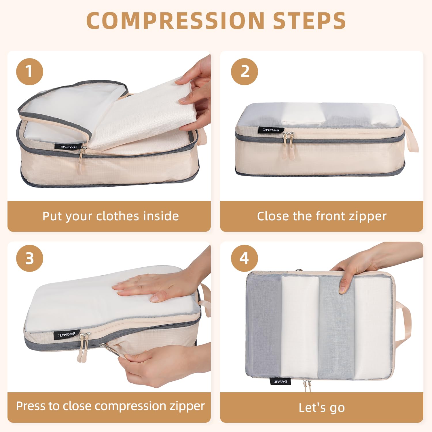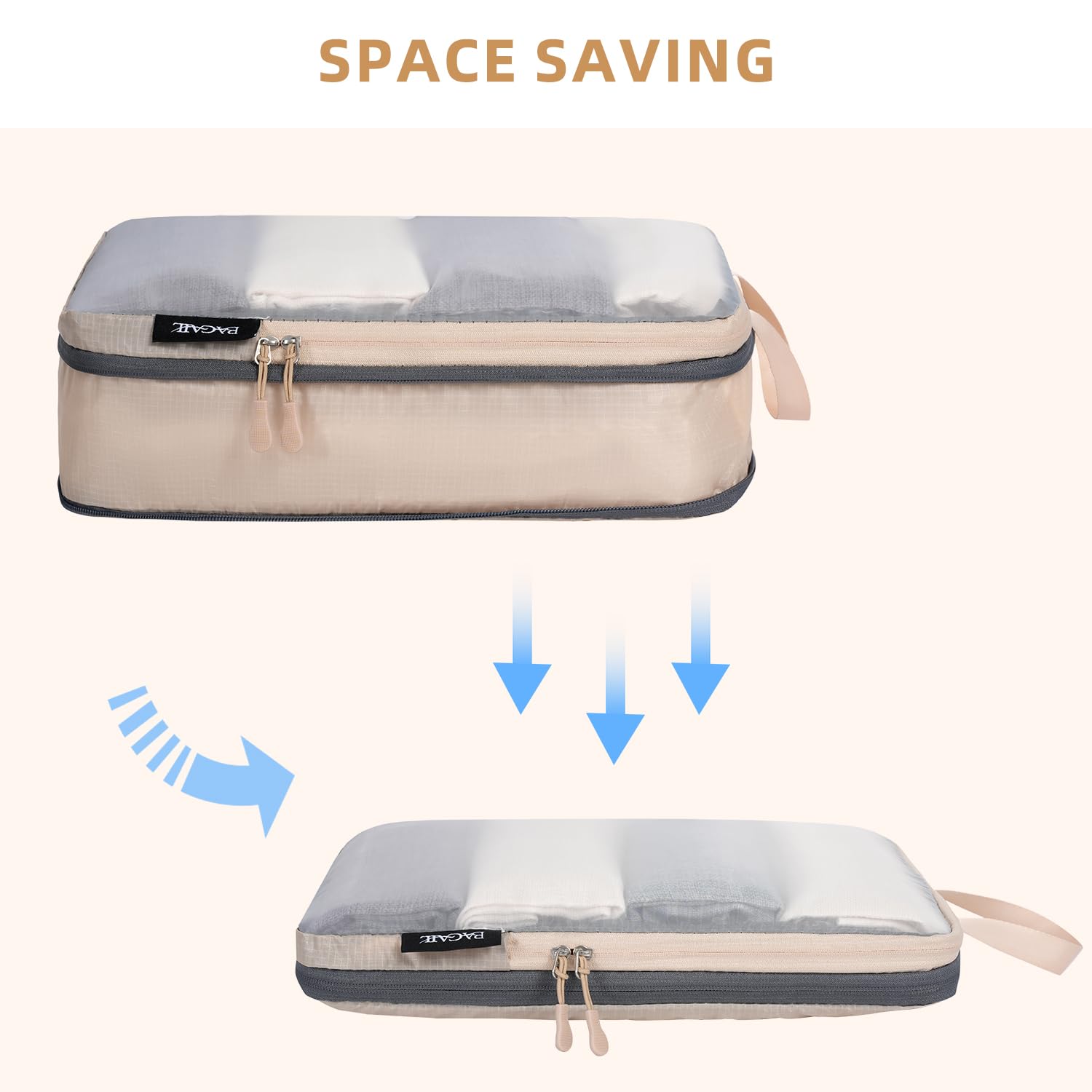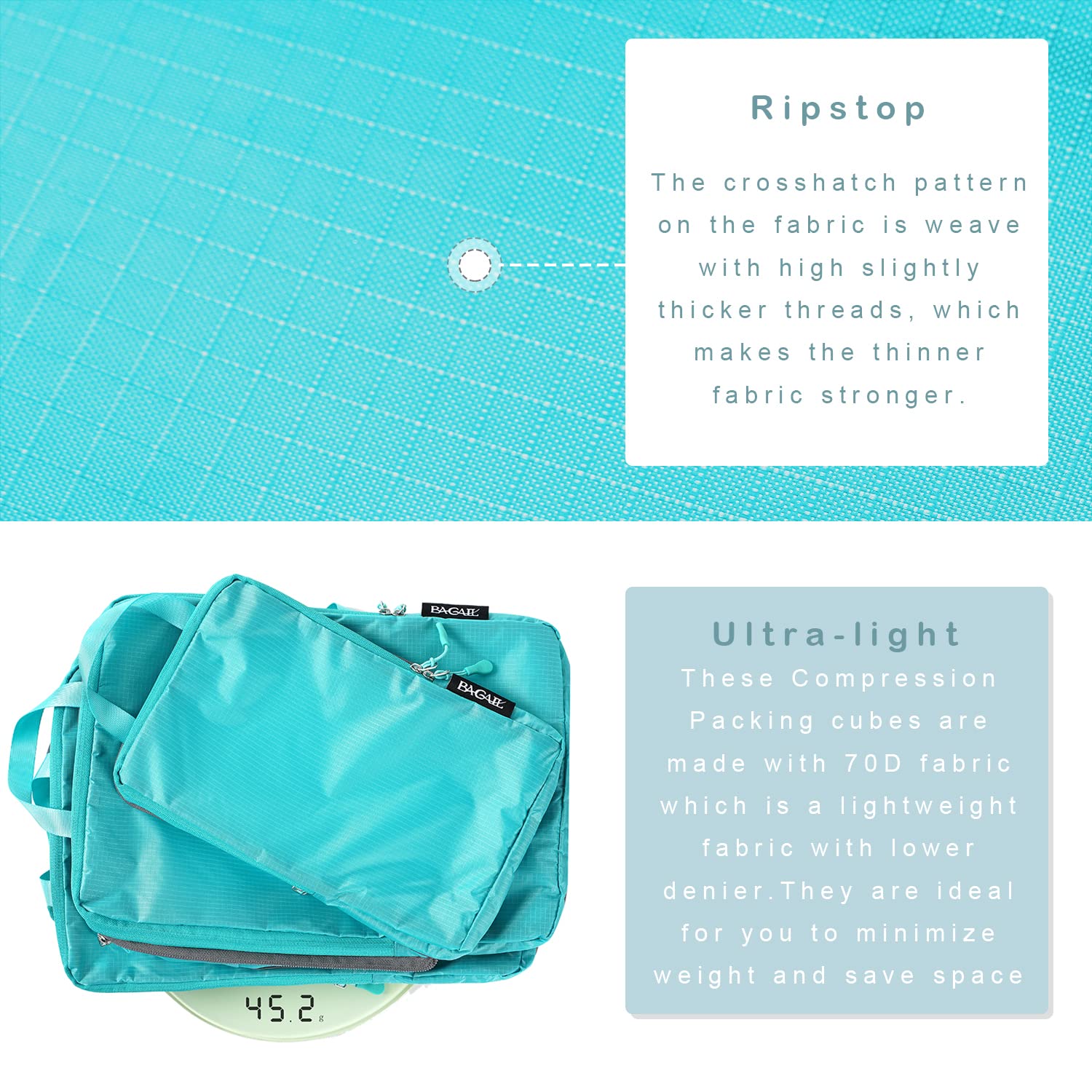 Space Saving: Save up to 50% space by compressing the packing cubes via the exterior compression zippers; And all the zippers we use are SBS zippers, it makes sure the packing organizers could be opened and closed easily