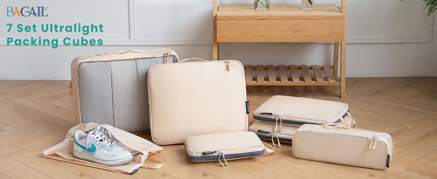 【Well Organized】-We offer 3 regular and 3 compression packing cubes with 1 shoe bag to meet your different packing needs. Classifying and organizing your belongings for your travel will become easy with these ultralihgt packing organizers.
