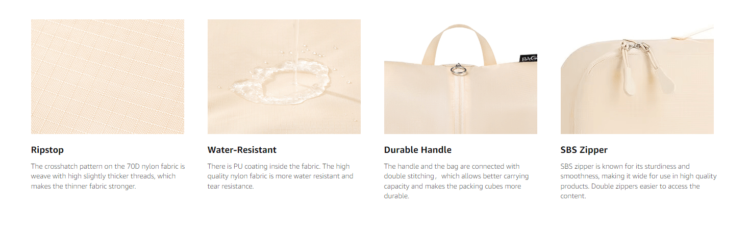 【Ultralight & Durable 70D Nylon】-These packing cubes are made of ultralight 70D nylon fabric, which is a lightweight fabric with lower denier. It’s reinforced with ripstop that a reinforcement technique increases a material’s resistance to rips and tears, so they can withstand long time use.