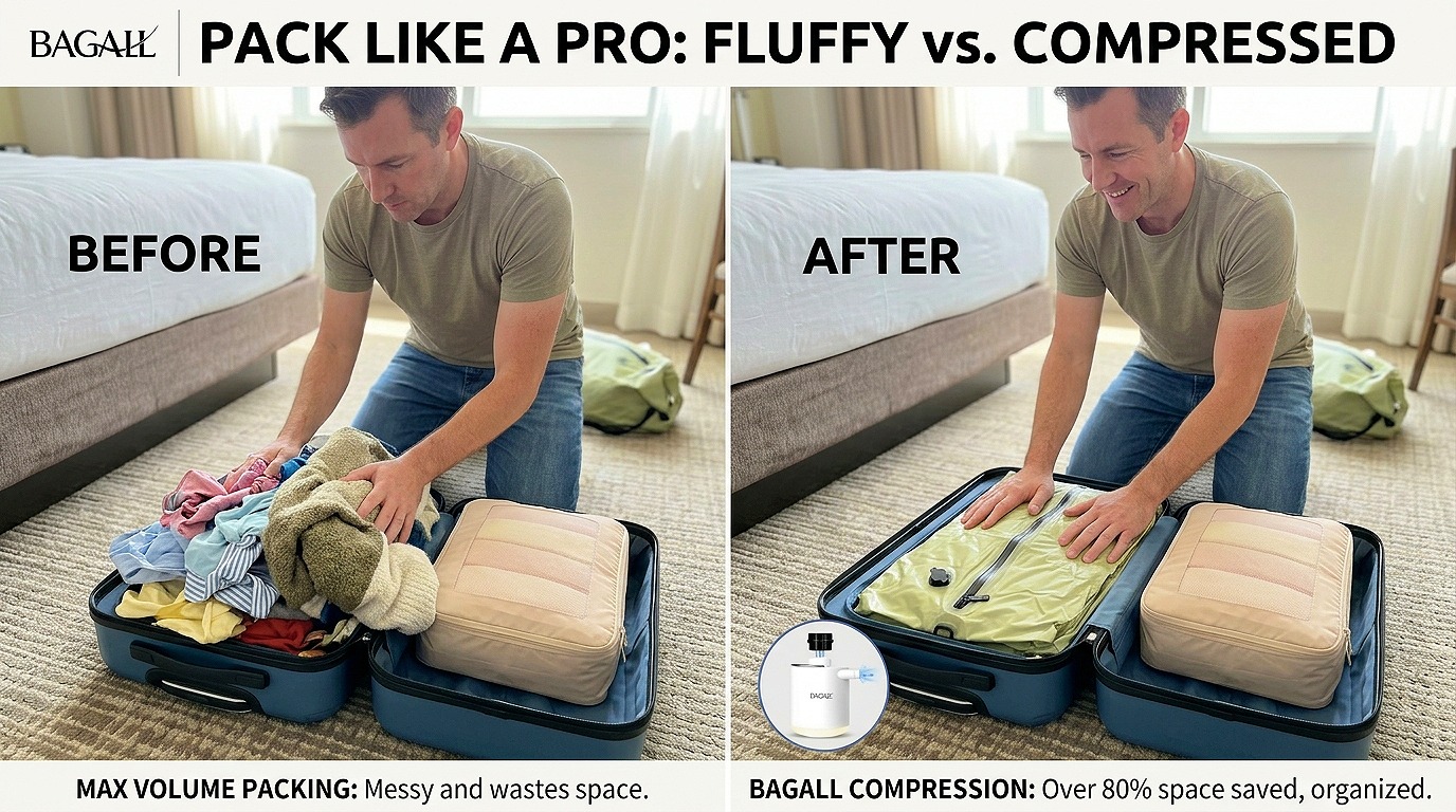The Bagail packing cubes offer the perfect solution for keeping your suitcase orderly. With packing organizers, you'll know exactly where everything is, and your clothing can be neatly arranged and compressed, allowing you to maximize your bag's space. Why waste time packing and unpacking when you can effortlessly slide your organizers into hotel drawers and quickly move from one place to another without having to rearrange your entire bag each time?