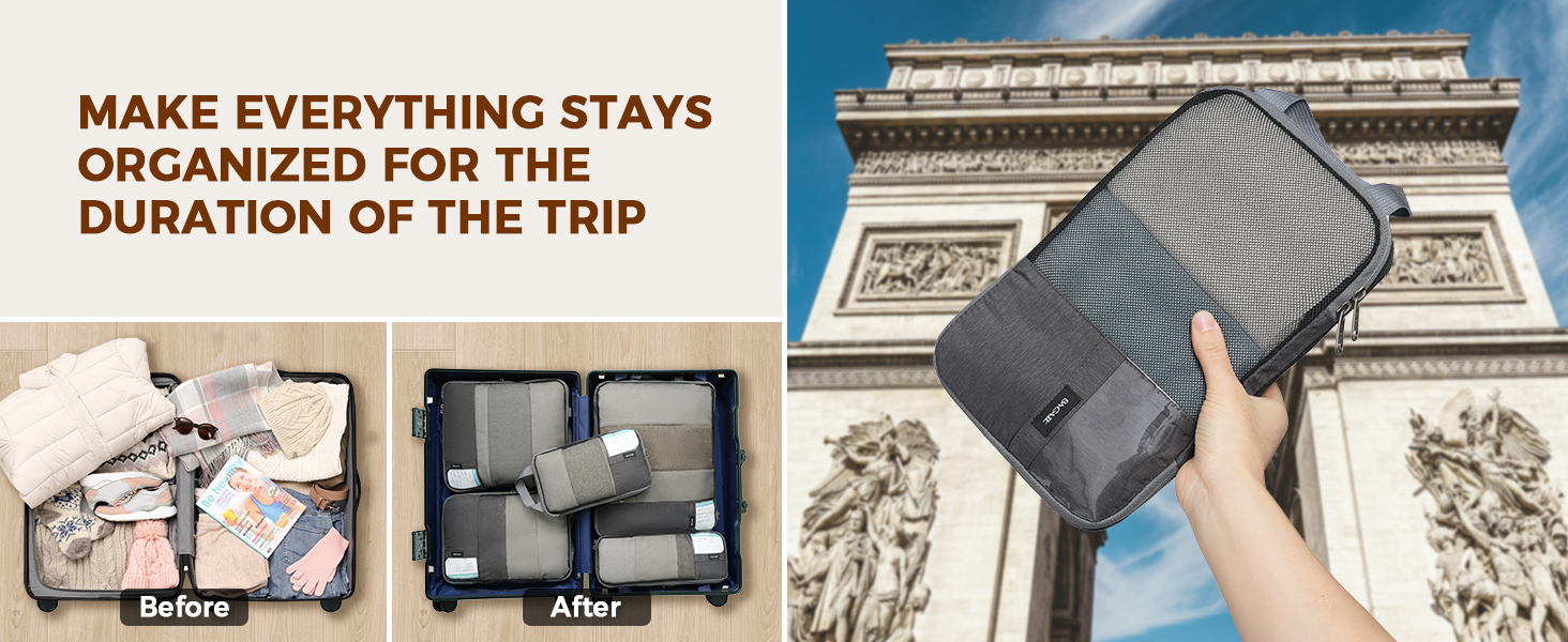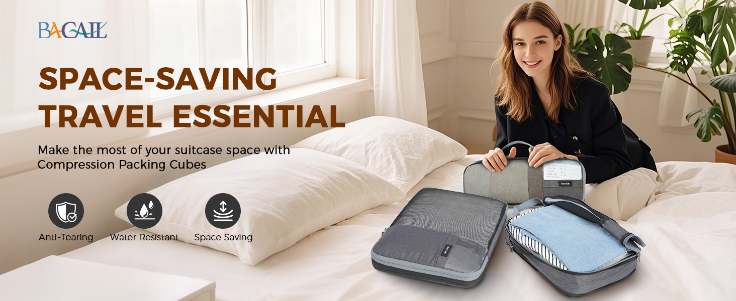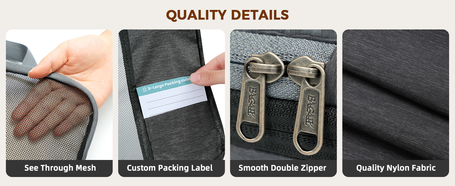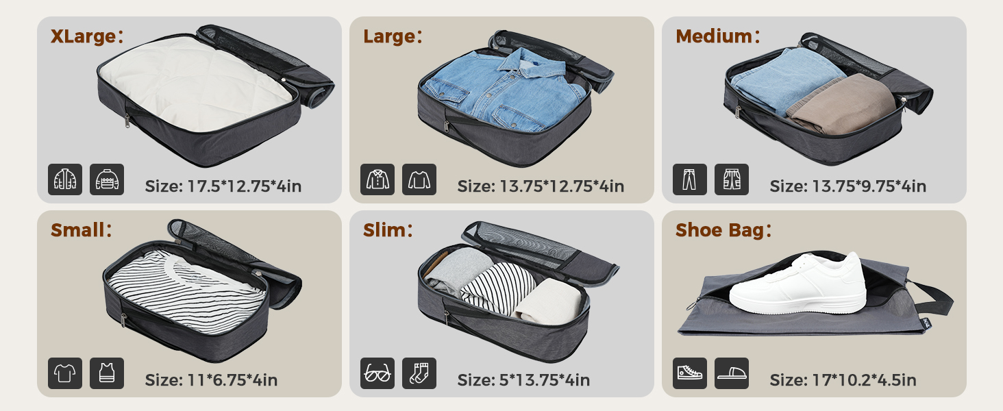 6pc Ultra-Light Compression Packing Cubes - Mesh Travel Organizers with Labels & Packing Checklist
